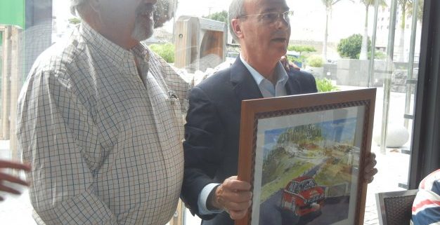 Como despedida de sus actividades hasta el Otoño, la Escudería que preside el piloto Hilario Gómez logró reunir a medio centenar de afiliados para conmemorar no sólo su 42 Aniversario sino rendir público homenaje a otra gran figura del automovilismo canario Diego Suárez y su mítico Honda Cívic. Como recuerdo, Hilario Gómez le hizo entrega de un cuadro pintado en óleo por Fermín Rivero, donde se recoge el Honda con el que logró numerosas victorias tanto en rallies como subidas. También recibió un álbum llenos de fotos de sus mejores momentos en el automovilismo y finalmente se proyectó un vídeo sorpresa elaborado por el secretario de la Escudería Ivan Bethencourt que puso la guinda de calidad y humor.